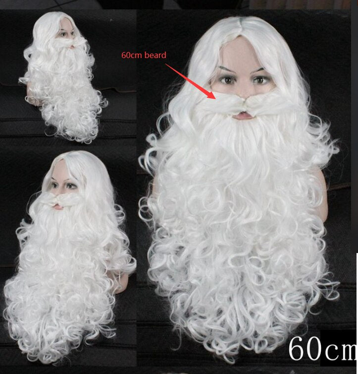 60/80cm Christmas Santa Claus Beard Wig False Beard Wig Role Plays Skin-friendly Wearing High Temp Fiber Beard